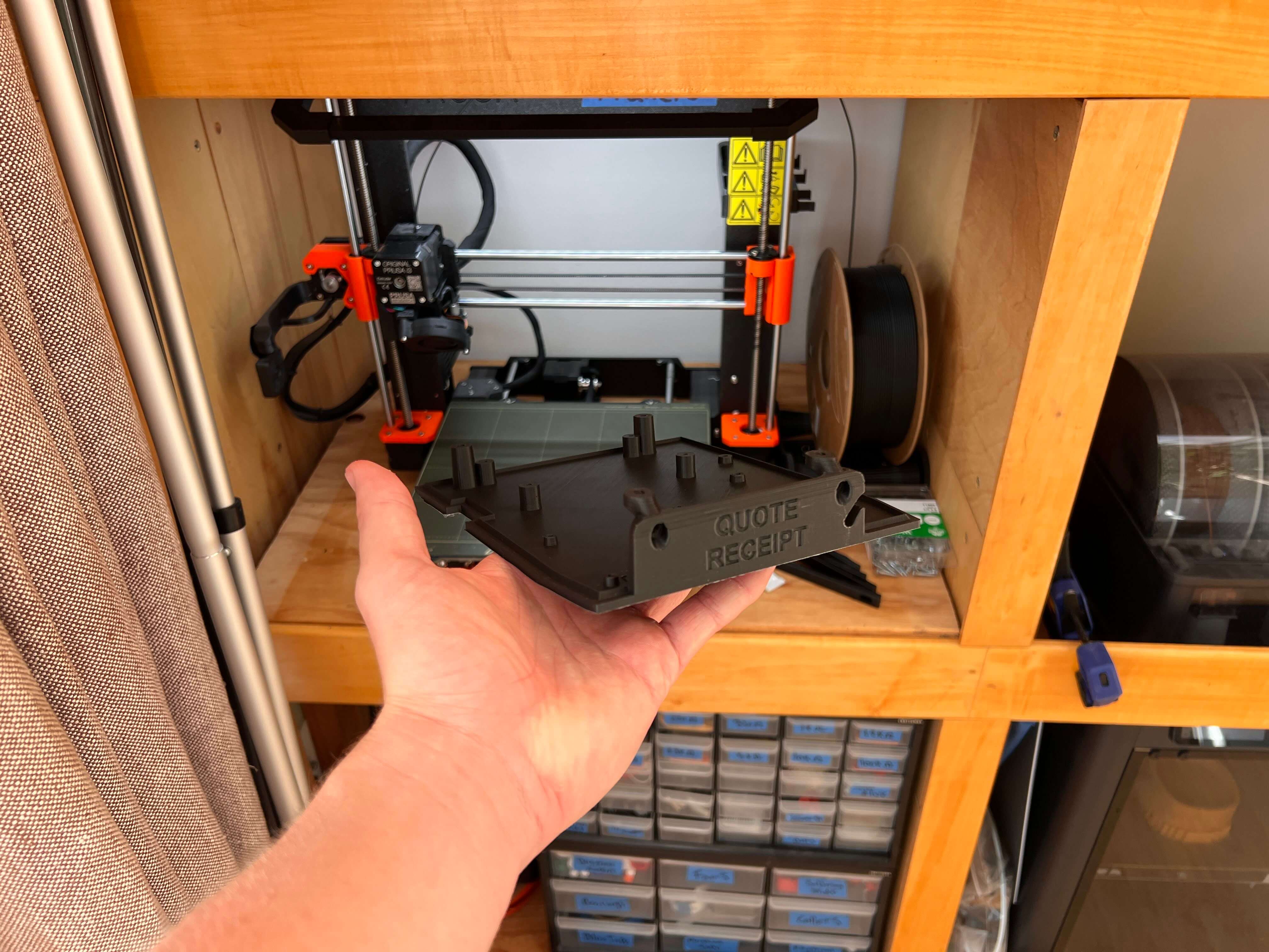 My roommate and I have been going all in on the apartment projects (AIPhone, Cathode Ray Doorbell, StairGuitar™, etc. - I’ll do write-ups on some of these at some point in the future), and I figured to stay in the same vein that my weekend project should attempt to solve my quote attribution problem. I also happened to have an 80mm Thermal Receipt Printer lying around from another project I never got around to finishing.